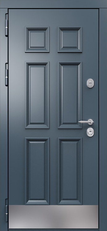Дверь стальная МДФ эмаль №563 — это удачное сочетание надежной металлической основы и аккуратной декоративной отделки. Каркас из профильной трубы и стальной лист толщиной 2 мм обеспечивают прочность и устойчивость к взлому, а ребра жесткости повышают общий ресурс эксплуатации. Важной особенностью модели является наличие терморазрыва в коробке и полотне: конструкция эффективно препятствует промерзанию зимой, исключает появление конденсата и сохраняет тепло в помещении. Панели МДФ с ПВХ-покрытием, использованные с обеих сторон, защищены от влаги и мелких механических повреждений, благодаря чему дверь долго сохраняет привлекательный внешний вид. Два контура резинового уплотнителя дополнительно усиливают защиту от сквозняков и уличного шума. Такая дверь органично подходит для частных домов, квартир и офисов, сочетая в себе надежность стали и практичность современной отделки. Дверь стальная МДФ эмаль №563 от производителя: быстрое изготовление и монтаж в Электроуглях, индивидуальные размеры, широкий выбор материалов и фурнитуры, официальная гарантия до 10 лет.