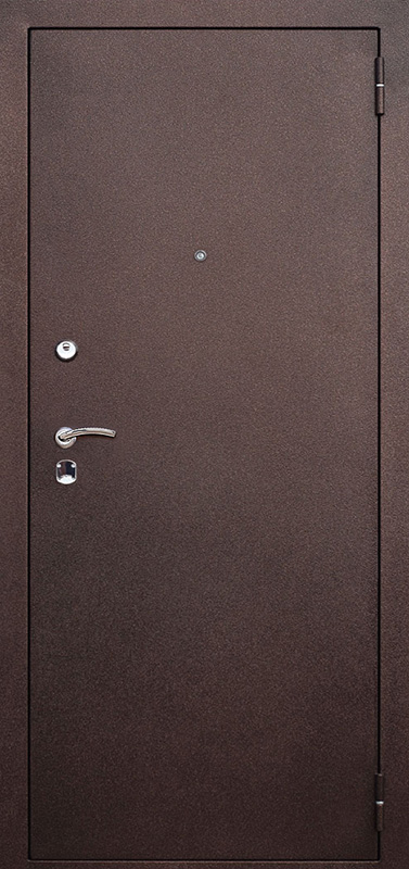 Входная дверь с напылением №82 создана для тех, кто ценит практичность и долговечность без лишних изысков. Она одинаково уверенно чувствует себя в квартире, офисе, подъезде или техническом помещении, выдерживая ежедневные нагрузки. Снаружи нанесено порошковое термонапыление — покрытие, известное своей стойкостью к царапинам и перепадам температуры, оно долго сохраняет первоначальный вид и не требует особого ухода. Внутри установлены ламинированные панели, добавляющие аккуратности и уюта. Основу конструкции формирует металлический лист толщиной 2 мм с усилением профильными трубами, что гарантирует жесткость и надежность. Два контура резинового уплотнителя эффективно блокируют сквозняки и пыль, а блокираторы повышают уровень безопасности. Модель изготавливается под любой размер проема и позволяет расширить функционал, дополнив дверь шумо- или теплоизоляцией по желанию. Входная дверь с напылением №82 от производителя: быстрое изготовление и монтаж в Электроуглях, индивидуальные размеры, широкий выбор материалов и фурнитуры, официальная гарантия до 10 лет.
