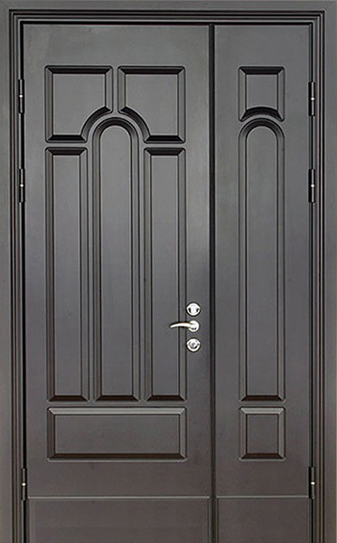 Металлическая двухстворчатая дверь для дома цвета графит №27 – это стильное и надежное решение для вашего жилья. Внешняя и внутренняя отделка выполнены из МДФ, что придает двери изысканный вид и увеличивает её стойкость к механическим повреждениям. Цвет графит придаёт двери современный и элегантный оттенок, который легко впишется в интерьер как частных домов, так и современных офисов. Металлическая двухстворчатая дверь для дома цвета графит №27 от производителя: быстрое изготовление и монтаж в Электроуглях, индивидуальные размеры, широкий выбор материалов и фурнитуры, официальная гарантия до 10 лет.