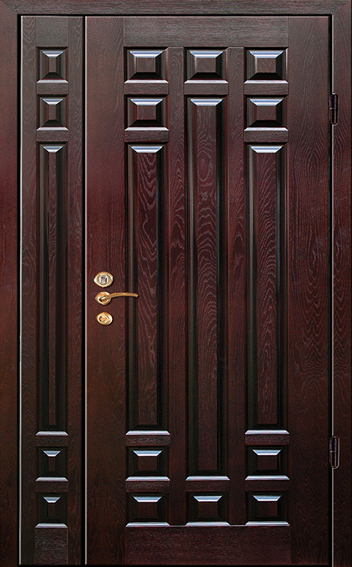 Эта двухстворчатая парадная дверь с объемной фрезеровкой №3 станет отличным акцентом в любом интерьере, добавив элегантности и солидности. Внешняя и внутренняя отделка из натурального дерева придает двери натуральный и стильный вид, который легко впишется как в классические, так и современные дизайны. Прочная конструкция двери с каркасом из профильной трубы 50х25 мм и листом металла толщиной 2 мм гарантирует долговечность и защиту. Ребра жесткости из профильных труб 40х25 мм повышают ее устойчивость к нагрузкам. Замки "Просам" и "Мосрентген" с тремя ригелями обеспечивают надежную защиту. Возможность выбора отделки и установки дополнительных элементов, таких как зеркало, стеклопакет или кованые детали, позволяет сделать дверь уникальной и подходящей под любые требования. Терморазрыв полотна и коробки способствует улучшению теплоизоляции. Вдобавок можно оснастить дверь современными замками и видеодомофоном для дополнительного комфорта и безопасности. Парадная двухстворчатая дверь с объемной фрезеровкой №3 от производителя: быстрое изготовление и монтаж в Электроуглях, индивидуальные размеры, широкий выбор материалов и фурнитуры, официальная гарантия до 10 лет.