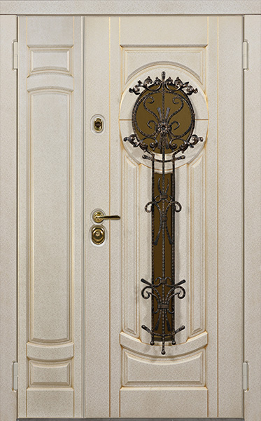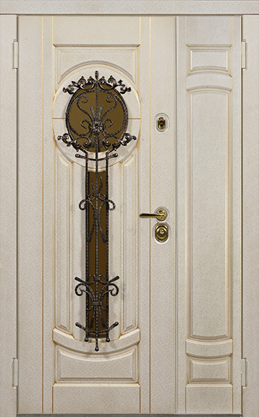 Двухстворчатая парадная дверь с ковкой и стеклом белая №30 — это сочетание красоты и надёжности. Конструкция из профильной трубы 50х25 мм и металлического листа толщиной 2 мм обеспечивает долговечность и стойкость к внешним воздействиям. Элементы ковки придают двери изысканный вид, а стеклопакет позволяет создать атмосферу лёгкости и прозрачности. Внешняя и внутренняя отделка выполнены из плиты МДФ, что делает дверь не только привлекательной, но и устойчивой к механическим повреждениям. Для дополнительной герметичности используются уплотнители с двумя контурами, а блокираторы обеспечат безопасность. Вариативность размеров и возможность добавления дополнительных опций, таких как шумо- и теплоизоляция, делают эту модель универсальной для установки в любом интерьере. Двухстворчатая парадная дверь с ковкой и стеклом белая №30 от производителя: быстрое изготовление и монтаж в Электроуглях, индивидуальные размеры, широкий выбор материалов и фурнитуры, официальная гарантия до 10 лет.