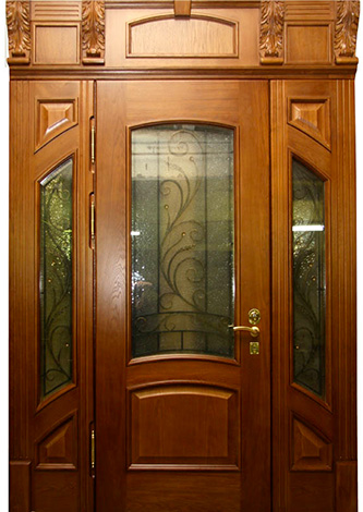 Дверь с надежной фурнитурой и коваными элементами на стекле №18