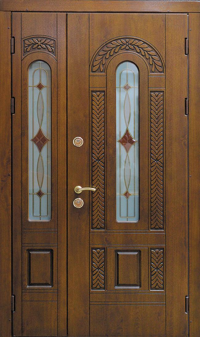 Дверь с надежной фурнитурой и коваными элементами на стекле №18