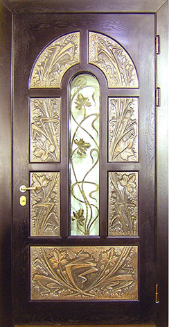 Красивая шпонированная дверь с надежной фурнитурой и ковкой "лоза" №33