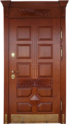 Эксклюзивная высокая входная дверь с железным отбойником №36 — это образец элегантности и функциональности, который идеально впишется в любой частный дом или коттедж. Изготовленная из массива дерева, она будет долго сохранять свой привлекательный внешний вид и устойчивость к внешним воздействиям. Прочная конструкция из профильных труб и листа металла толщиной 2 мм, усиленная ребрами жесткости, гарантирует надежность и долговечность. Терморазрыв в коробке и полотне помогает минимизировать теплопотери и защищает от перепадов температуры. Дверь оснащена высококачественными замками, что обеспечивает высокий уровень безопасности. Железный отбойник добавляет двери не только дополнительную защиту, но и стильный элемент дизайна. Эксклюзивная высокая входная дверь с железным отбойником №36 от производителя: быстрое изготовление и монтаж в Электроуглях, индивидуальные размеры, широкий выбор материалов и фурнитуры, официальная гарантия до 10 лет.