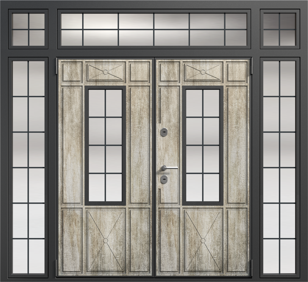 Парадная дверь с остекленной фрамугой №6 — это идеальный выбор для тех, кто ценит элегантность и функциональность. Внешняя отделка из панелей МДФ ПВХ обеспечивает долговечность и устойчивость к внешним воздействиям, что делает эту модель подходящей как для частных домов, так и для офисных помещений. Прочная конструкция с каркасом из профильной трубы 50x25 мм и листом металла толщиной 2 мм гарантирует долговечность и высокую безопасность. Замки Kale Kilit с тремя ригелями обеспечат надежную защиту, а уплотнение с двумя контурами эффективно защитит от шума и холода. Дополнительные элементы, такие как стеклопакеты, зеркала или кованые элементы, можно добавить по вашему желанию, позволяя адаптировать дверь под любые требования. Парадная дверь с остекленной фрамугой №6 от производителя: быстрое изготовление и монтаж в Электроуглях, индивидуальные размеры, широкий выбор материалов и фурнитуры, официальная гарантия до 10 лет.